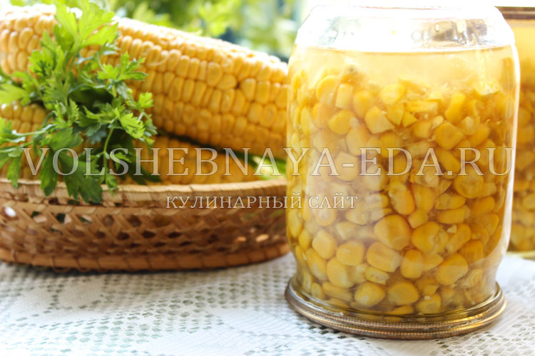 Готовые зерна раскладывают по стерилизованным банкам на 3/4 объема. Маринад готовят из жидкости, что варилась, с добавлением соли и сахара, доводят до кипения и разливают по банкам поверх зерна.