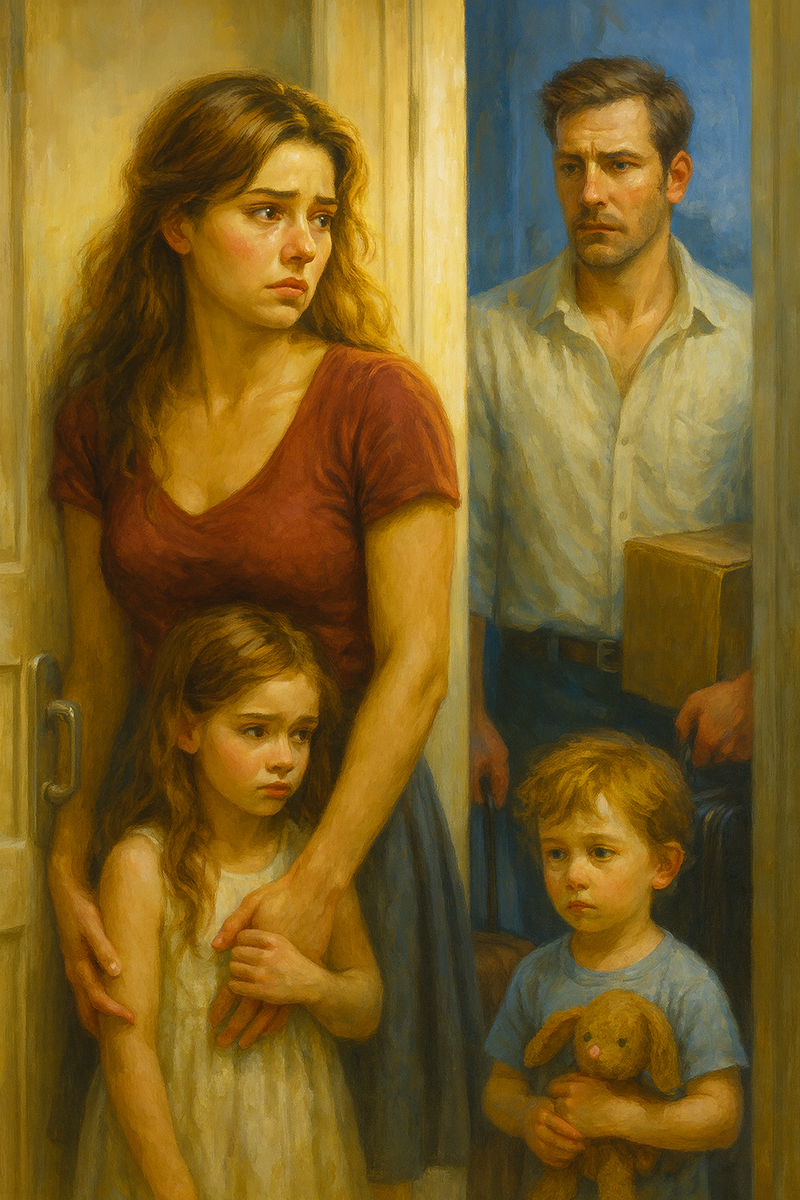 На кухне пахнет чаем и крахмалом; табурет держит аккуратную блузу, как когда-то в школе. Два ребенка рядом — один спит поперек кровати, другой держит резинку для волос как талисман. Анна, подступая к косяку, видит царапину — след вчерашнего «уйди» и хлопка дверью, после которого в квартире стало светло и время стало слышно по-новому.