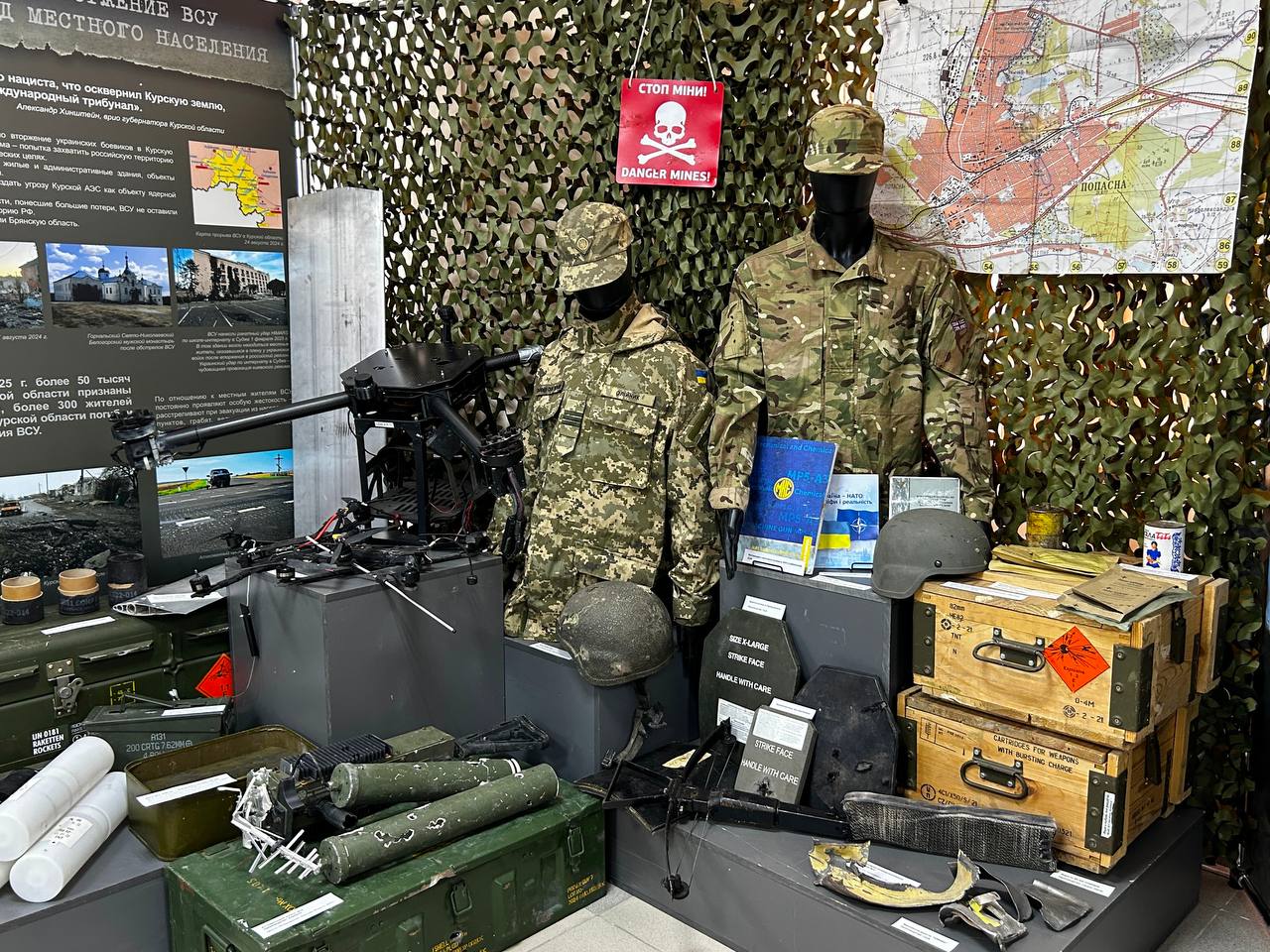 Экспозиция выставки через документы, фотографии и свидетельства очевидцев событий рассказывает об истории появления украинского национализма, геноциде русскоязычного населения Донбасса и притеснении православия.