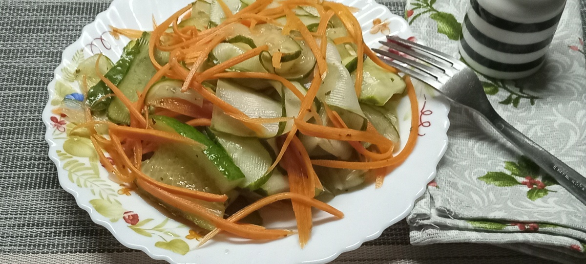 1. Начните с того, чтобы тщательно промыть свежие огурцы, а затем нарезать их тонкими полосками. Не забудьте также подготовить морковь: промыть, очистить и нарезать.