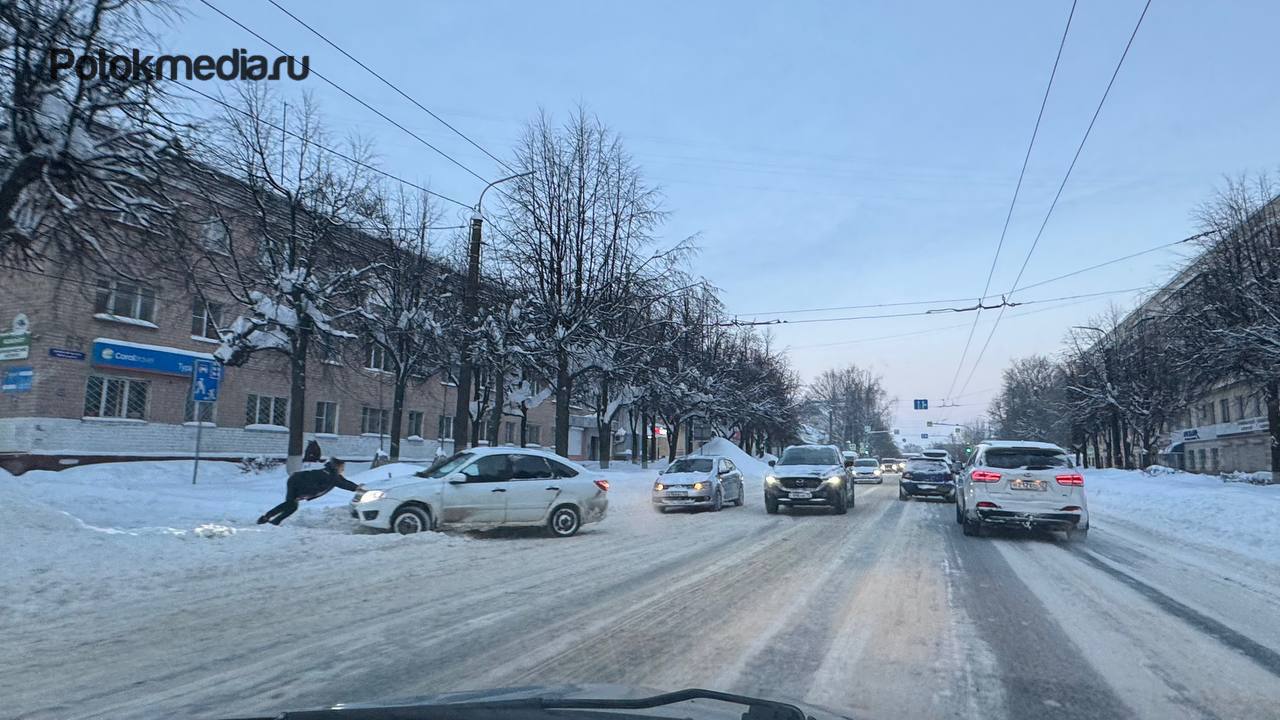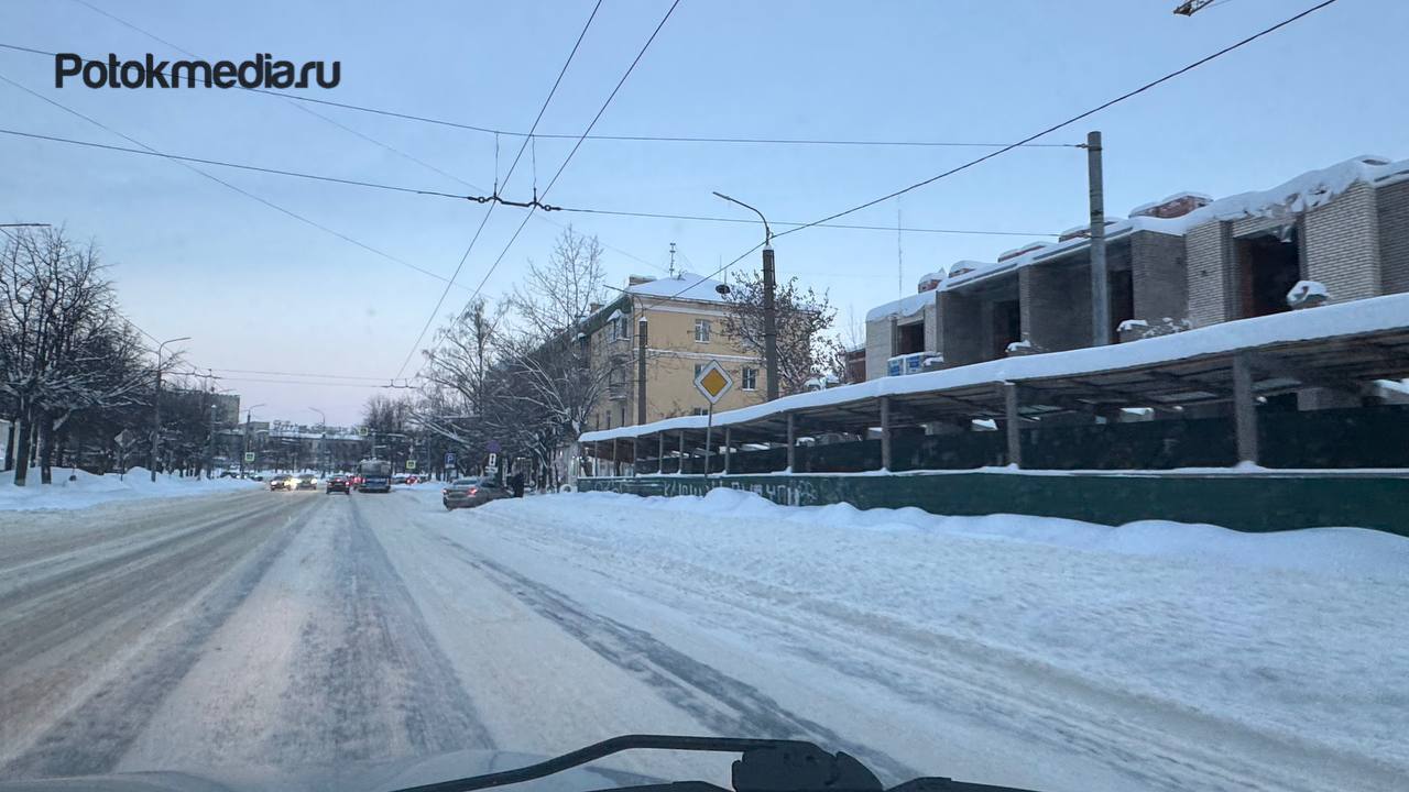 После снегопада, который длился более 2 суток, в пятницу утром дороги на центральных улицах Йошкар-Олы в целом почищены, заторов почти нет