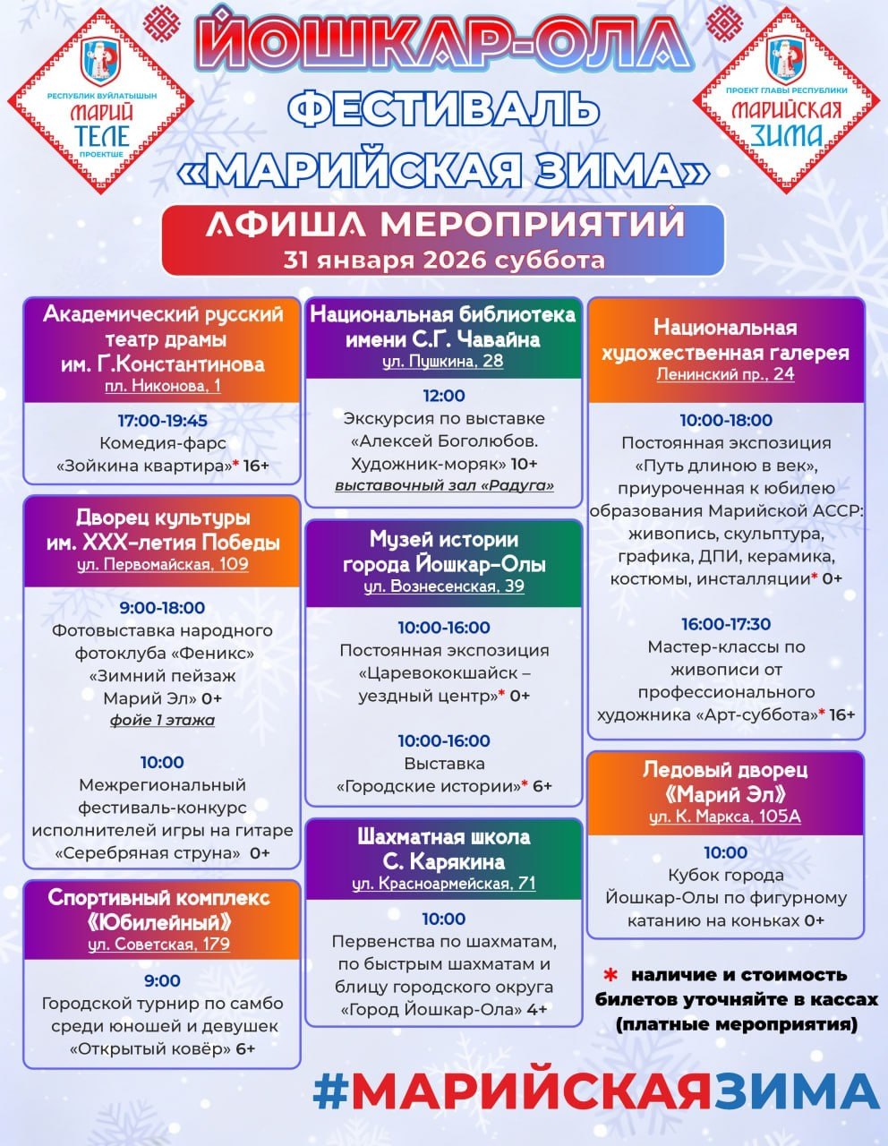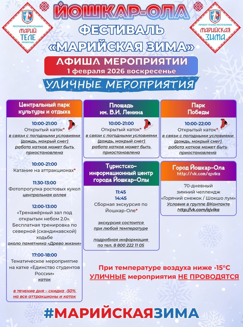 В выходные, 31 января и 1 февраля, Йошкар-Ола приглашает жителей и гостей на масштабный фестиваль «Марийская зима»