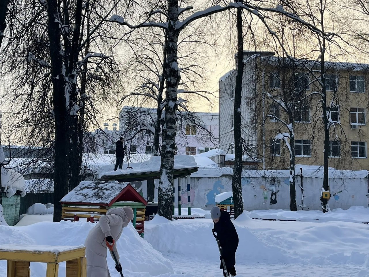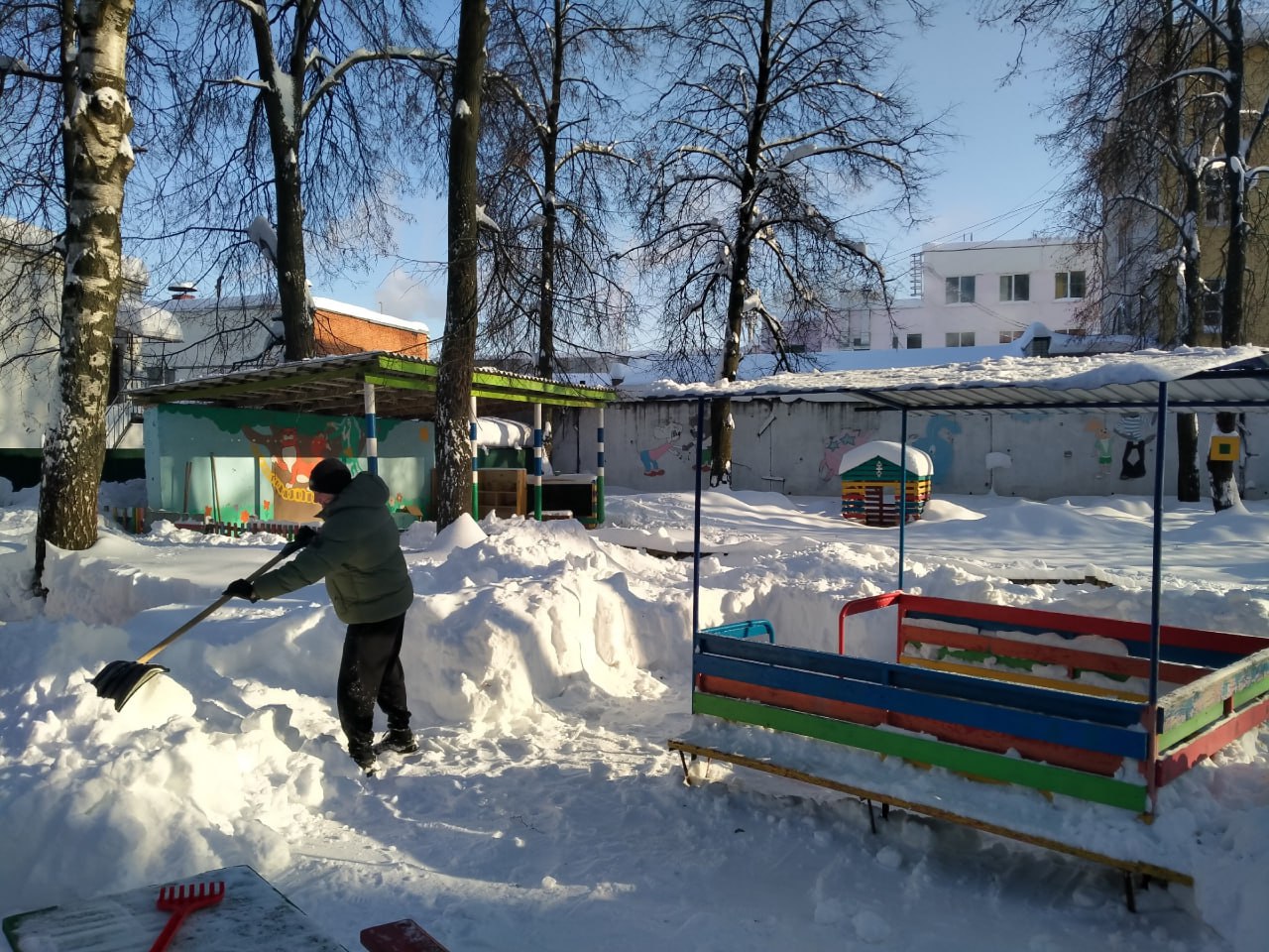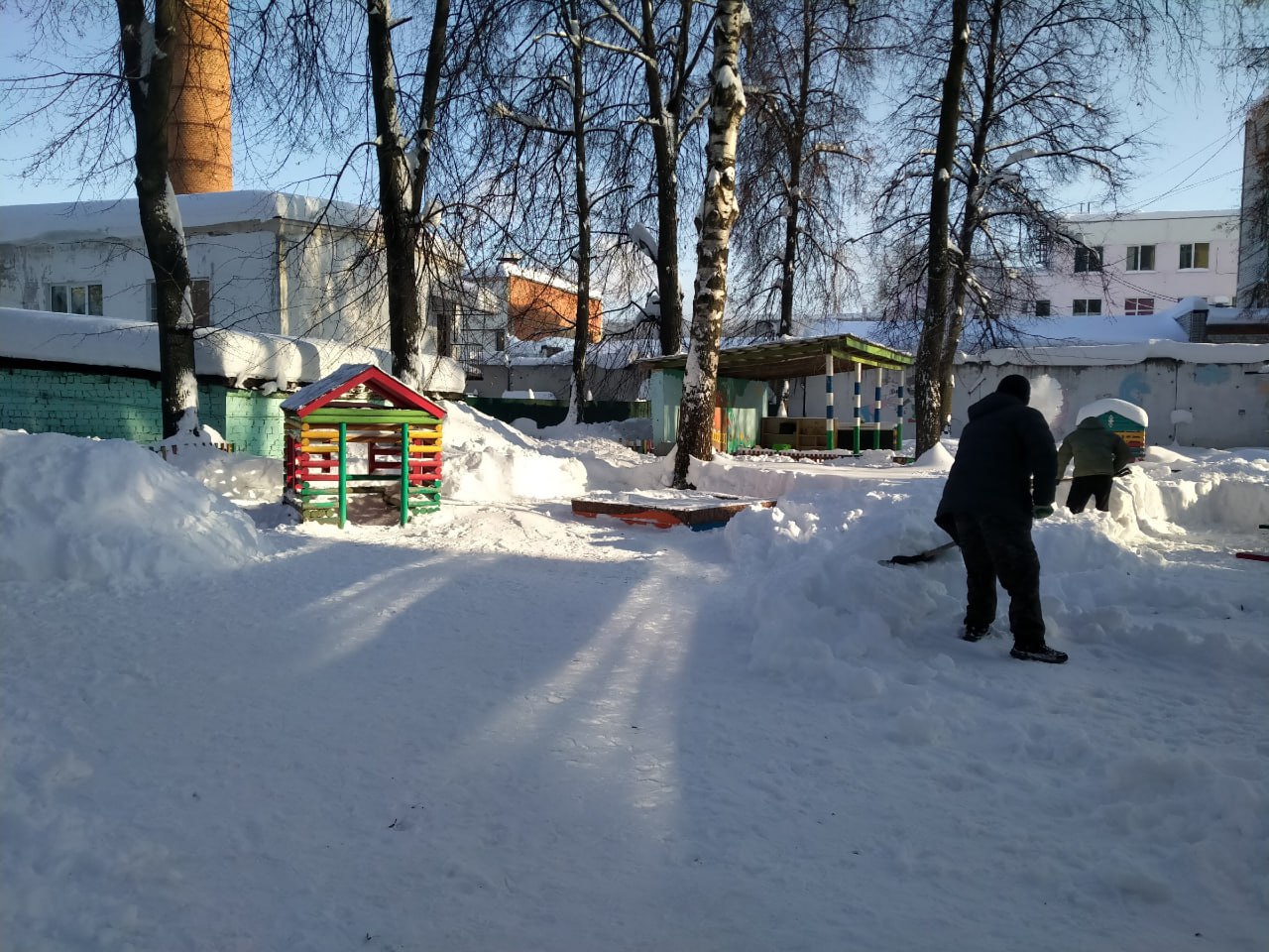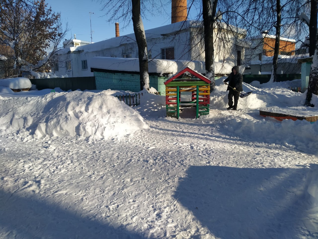 Детский сад 31 "Радуга" организовали коллективный выход для уборки снега на прилегающей к зданию территории. Сотрудники детского сада, совместно с родителями воспитанников дружно расчистили детские площадки, очистили крыши строений и развивающих конструкций. Теперь нашим воспитанникам комфортно и безопасно играть на очищенных площадках!