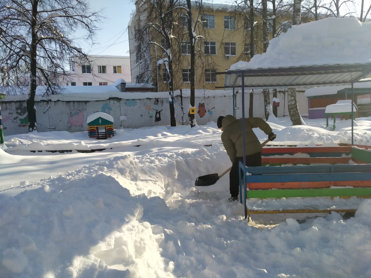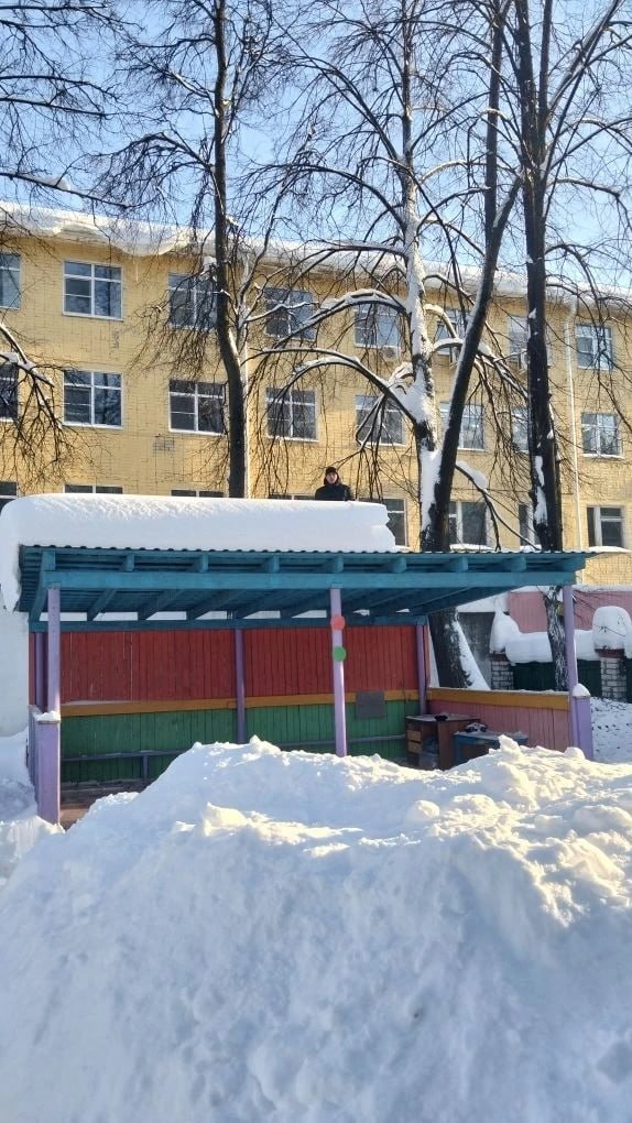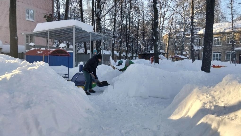 Снежник в Йошкар-Оле. Детский сад 31 "Радуга" организовали коллективный выход для уборки снега на прилегающей к зданию территории