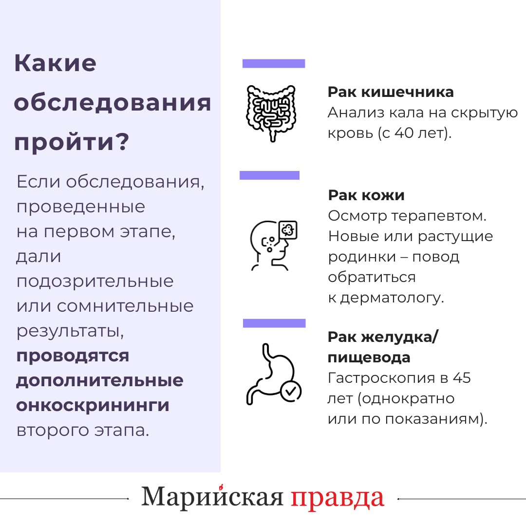 Это специальные обследования, которые помогают найти рак на самой ранней стадии, когда еще нет никаких симптомов, а шансы на полное излечение – максимальны. И они бесплатны по полису ОМС.