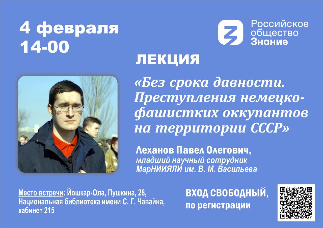 Йошкаролинцев приглашают на лекцию, посвященную преступлениям немецко-фашистских оккупантов