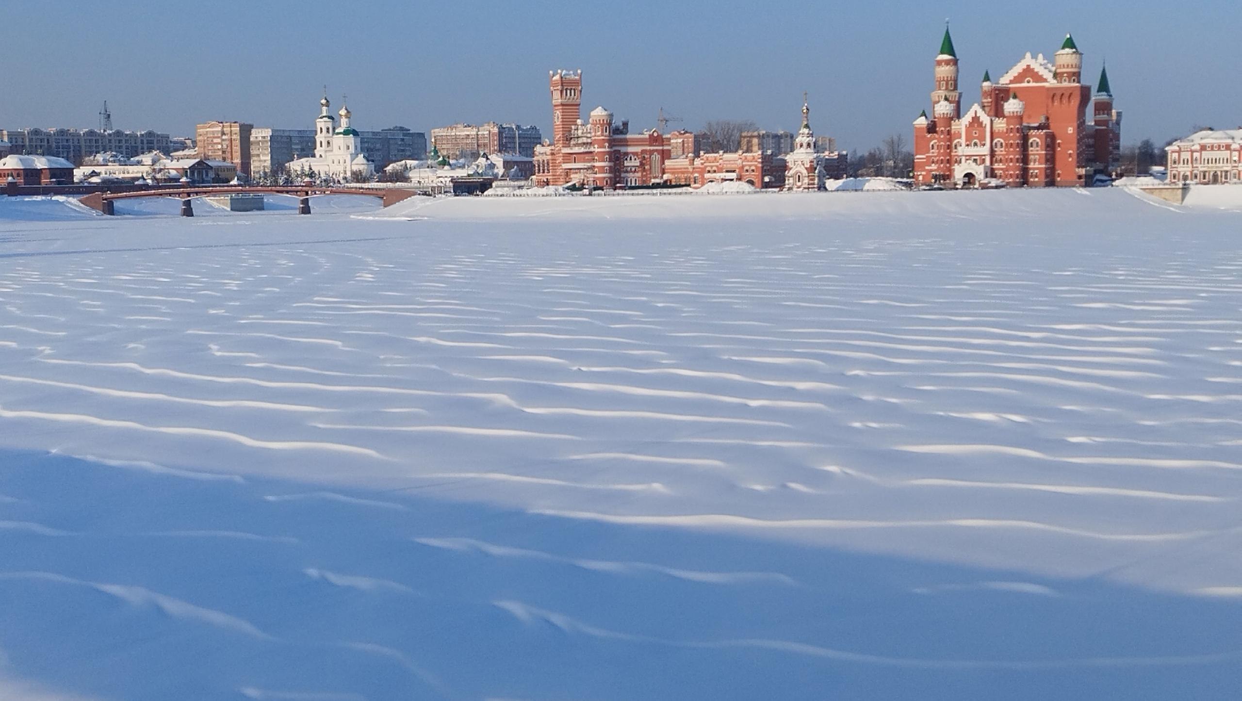 Погода преподнесла очередной сюрприз жителям марийской столицы. На реке опять появились снежные барханы. Напомним, в этом сезоне горожане уже имели возможность полюбоваться ими. Это было во второй декаде декабря, когда снежные барханы образовались на зеркальной глади льда.