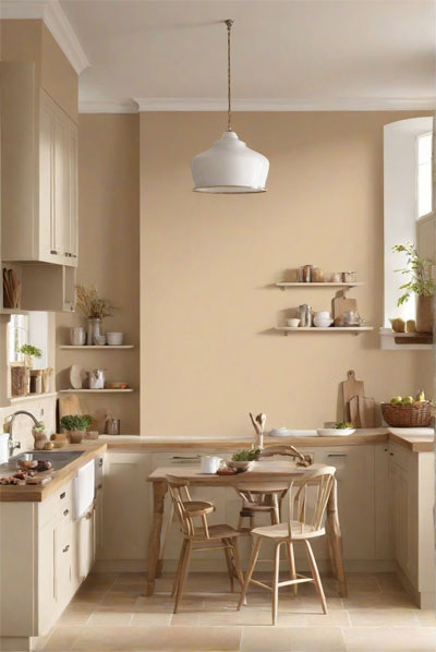 Краска неприхотлива в освещении: она выглядит прекрасно как при ярком свете, так и в более тёплом ламповом. Часто используется для акцентных стен, чтобы внести интересные нотки в интерьер.