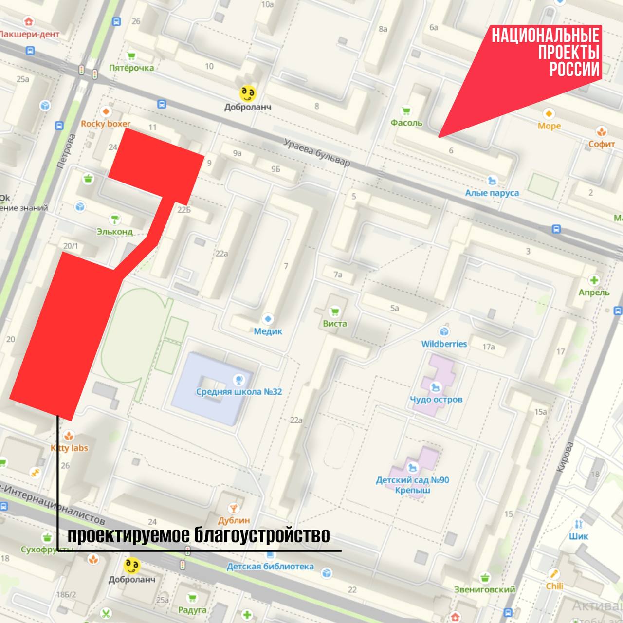 В этом году по федеральному проекту «Формирование комфортной городской среды» в нашем городе будут реализованы три объекта благоустройства. Один из них — территория от улицы ВоиновИнтернационалистов, д. 26а до бульвара Ураева, д. 9а.