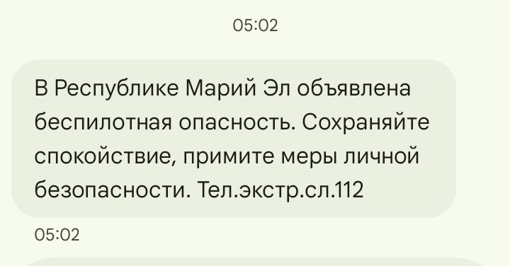 «В Марий Эл объявлена беспилотная опасность. Сохраняйте спокойствие, примите меры личной безопасности», - говорится в сообщении от РСЧС.Отметим, что подобное предупреждение поступило жителям республики второй...