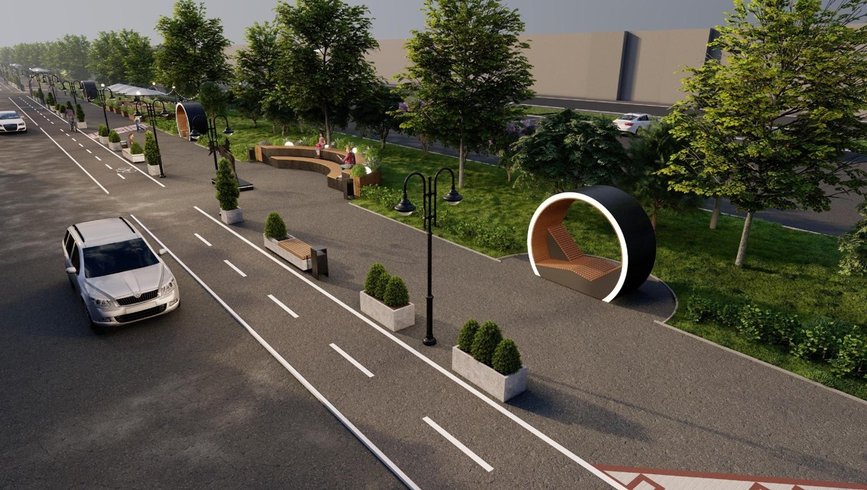 Здесь появятся удобная пешеходная инфраструктура, велодорожки, зоны отдыха с качелями и скамейками, красивое освещение, уличные вазоны с растениями. Вдоль дороги высадят крупномеры. Живая изгородь из кустарников не только украсит проспект, но и снизит шум от дороги. В оформлении территории используют национальные символы нашего края.