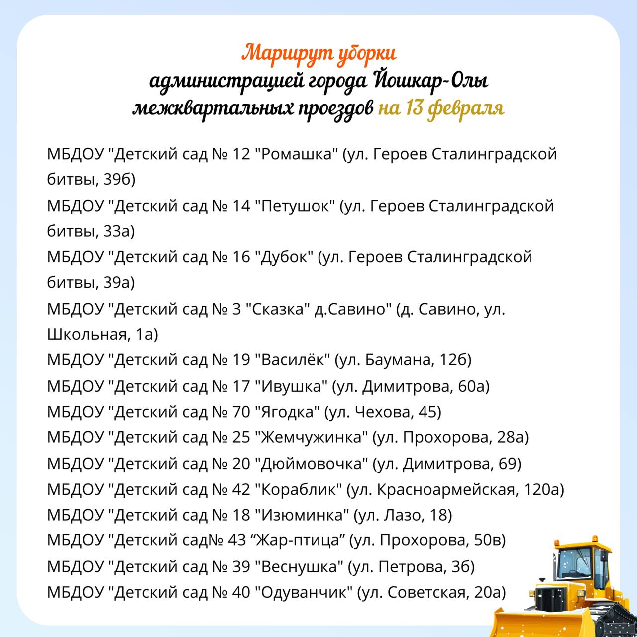 - по улице Воинов-Интернационалистов, на участке от улицы Кирова до улицы Вознесенской: с 20:00 12 февраля до 07:00 13 февраля; с 20:00 13 февраля до 07:00 14 февраля; с 20:00 14 февраля до 07:00 15 февраля- по улице Строителей, на участке...