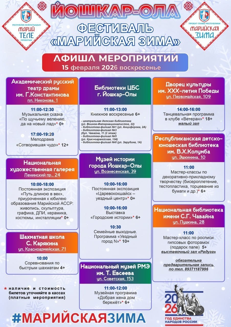 Опубликована афиша мероприятий фестиваля «Марийская зима» в Йошкар-Оле на 14-15 февраля