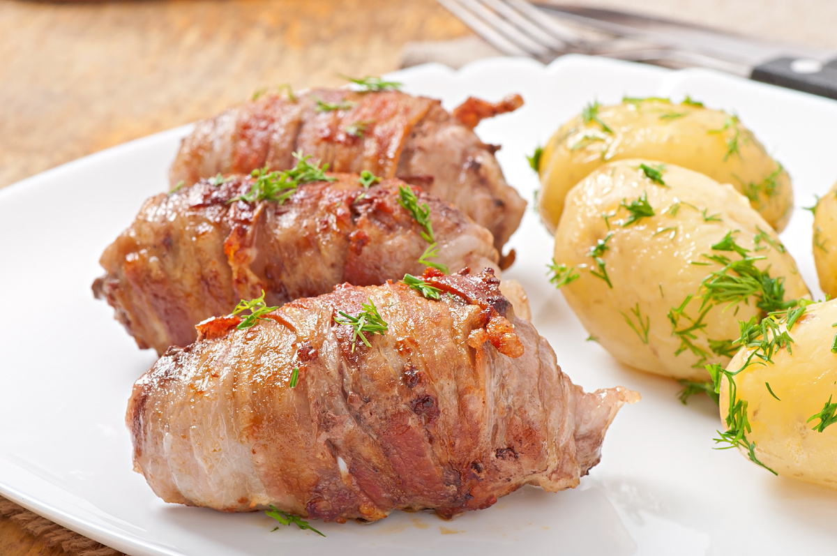 Совет: Мясо не стоит отбивать в тонкие пласты - достаточно нарезать его на ломтики толщиной около 1,5 см, чтобы сохранить сочность.