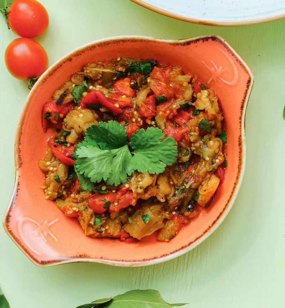 Баклажаны — главные болгары в этом блюде. Остальные ингредиенты, такие как перец и помидоры, лишь подчеркивают их вкус и добавляют изюминку. После того как все компоненты смешаны, пришло время добавить немного соли, приправить хмели-сунели и черным перцем или специей для кавказских блюд.