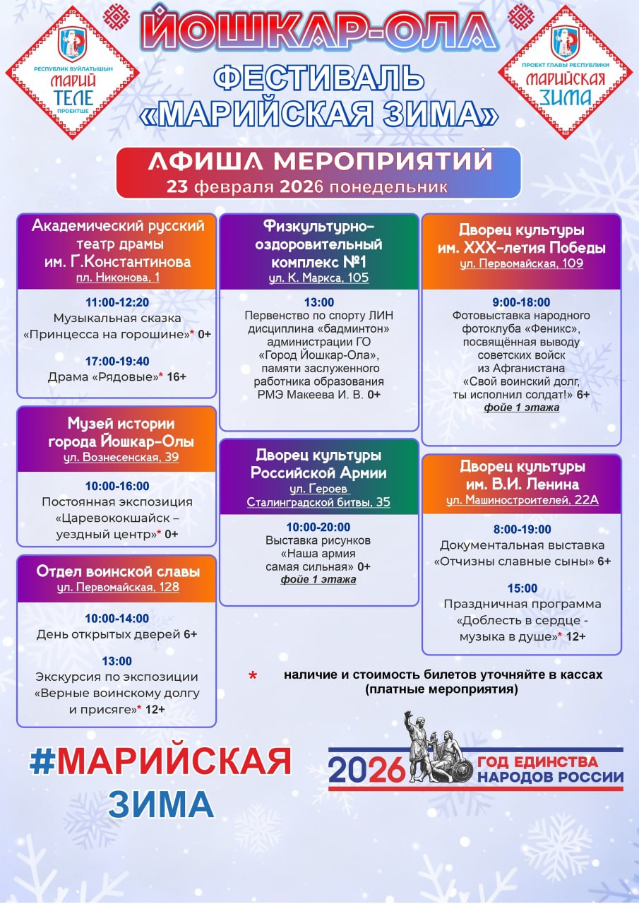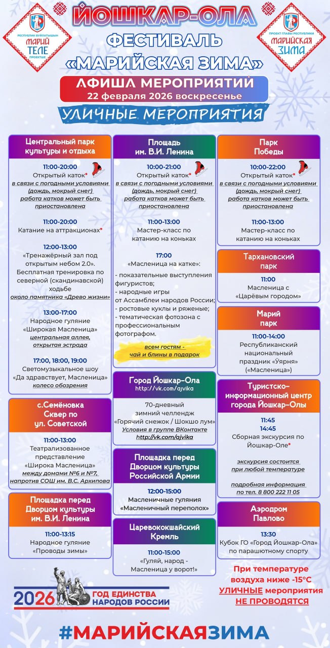 Мероприятия включают праздничный забег, кубок по парашютному спорту, концертно-развлекательную программу, приуроченную ко Дню защитников Отечества, а также выставки, экскурсии, мастер-классы и традиционные масленичные...