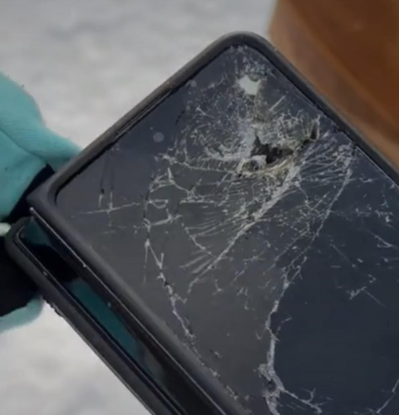 Всего за несколько секунд зверь нанёс рваные раны на руке и бедре. Один удар пришёлся на карман брюк, где был телефон. У гаджета повреждён корпус, остались следы прокола. Очевидно, смартфон принял удар на себя и снизил риск повреждения бедренной артерии.