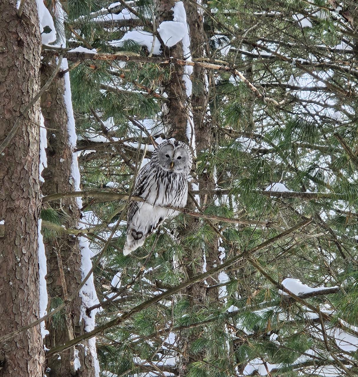 В Ботаническом саду Йошкар-Олы вновь замечены охотничьи птицы. В частности, кедровую аллею сада посетил неясыть.