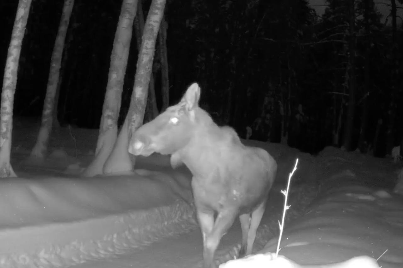 Фотоловушка в заповеднике «Большая Кокшага» запечатлела диалог двух сохатых великанов во время их ночной прогулки.