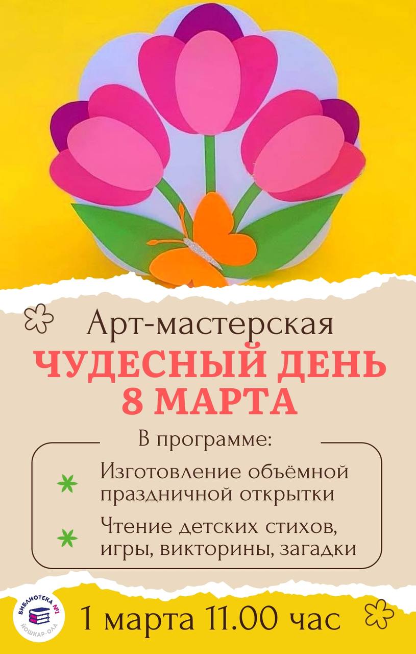 Приглашаем детей и родителей на мастер-класс по изготовлению объемной праздничной открытки к 8 Марта