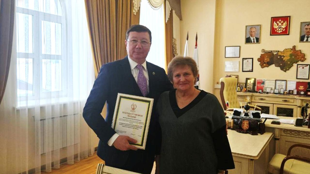 Ирина Багаева вручила Константину Иванову благодарственное письмо. Министр поблагодарил команду Комитета за служение на благо Победы.