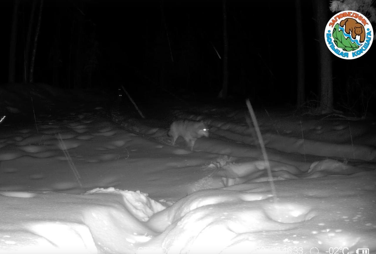 В заповеднике «Большая Кокшага» фотоловушка запечатлела ночную прогулку стаи волков.