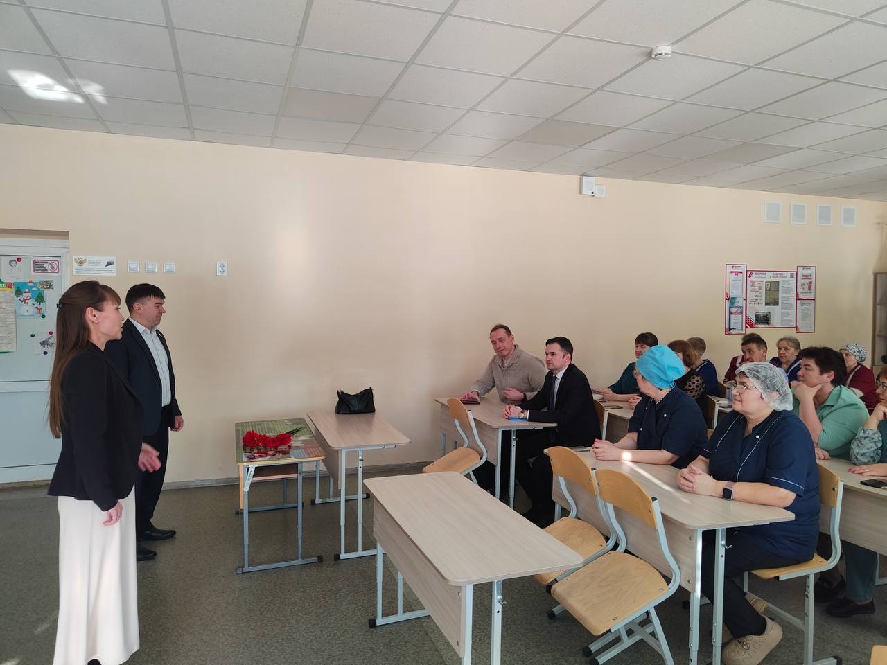В рамках визита парламентарий встретился с коллективом Куженерской основной школы, поздравил педагогов с наступающим Международным женским днём.