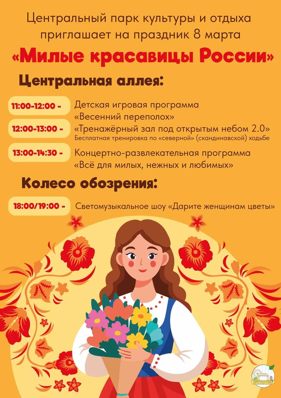 Центральный парк культуры приглашает вас провести этот чудесный день вместе с ними на празднике «Милые красавицы России»!