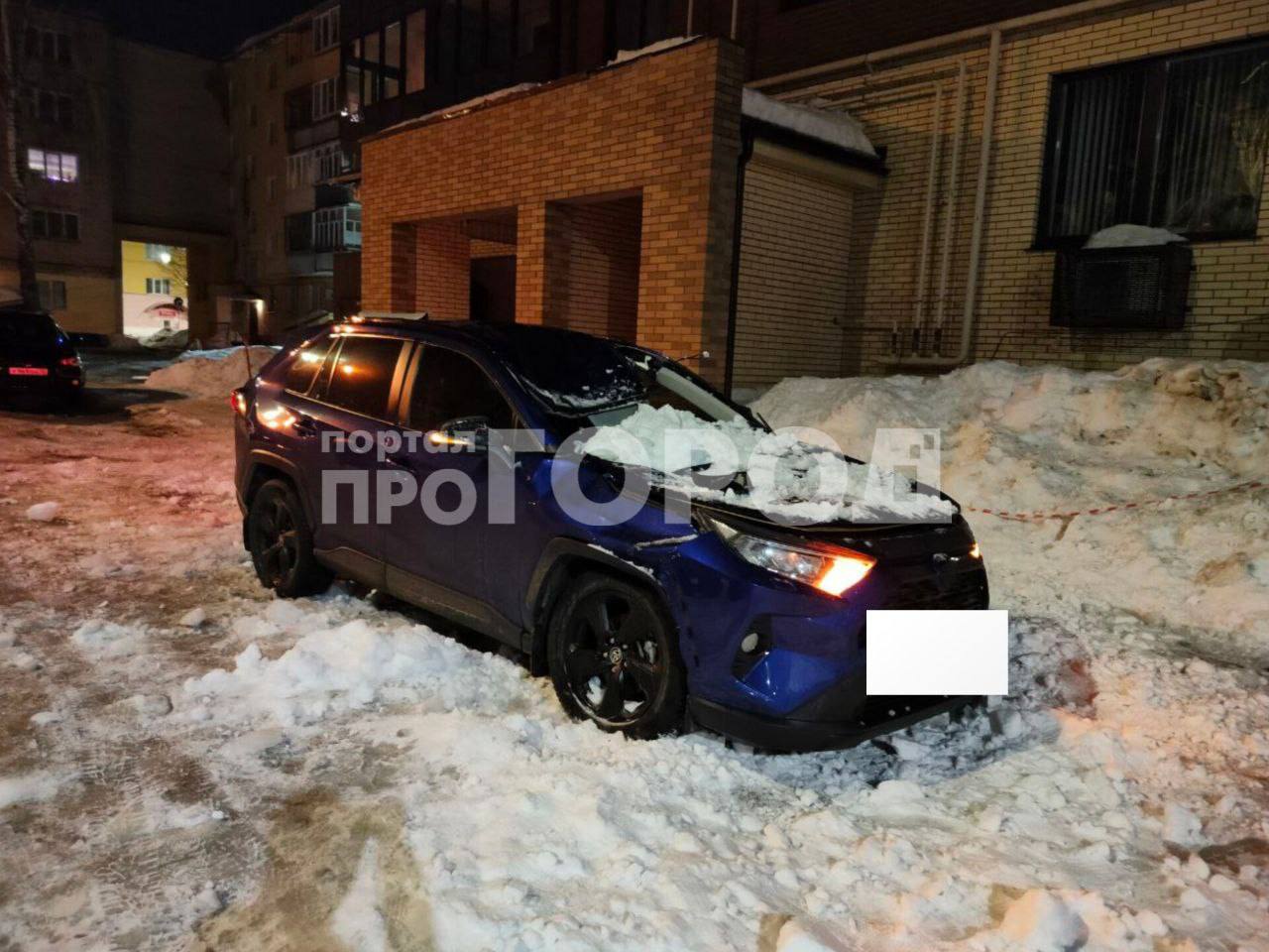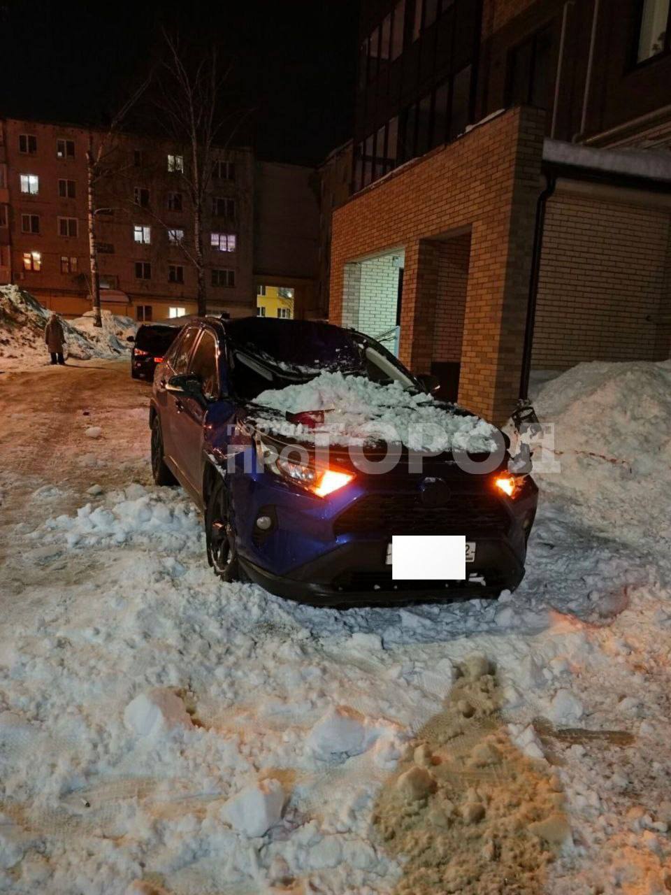 В Йошкар-Оле во дворе дома 5 на Площади Революции глыба льда и снега упала на припаркованную машину, пишет Про Город Йошкар-Ола