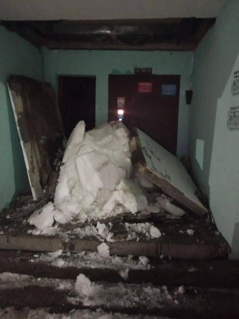 Инцидент произошел в пятиэтажном панельном доме №5 на улице Горького. Жильцы опубликовали в соцсетях кадры с места происшествия, на которых видно, что бетонная крыша крыльца обвалилась прямо у входной двери подъезда.