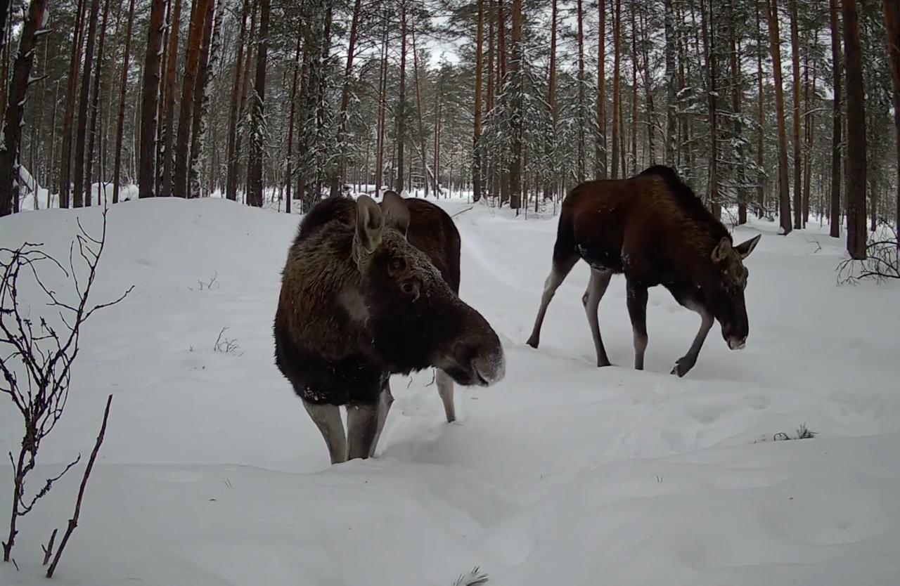 В этот период лоси выбирают маршруты с более плотным снегом или участки под кронами густых елей, где снежный покров меньше. Такие привычки помогают им сохранять энергию и избегать ненужных нагрузок.
