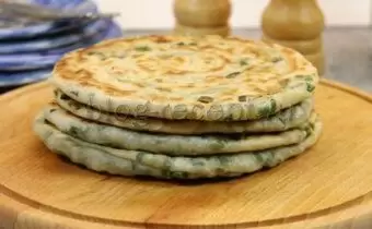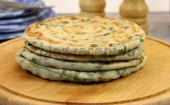 Готовые лепешки кладут в стопку, они получаются слоистыми и мягкими. Это отличный гарнир к шашлыку, тушеному мясу или даже к супу. С поистине простым и вкусным сочетанием зелени и теста порадуйте своих близких, подавая эти лепешки на стол!