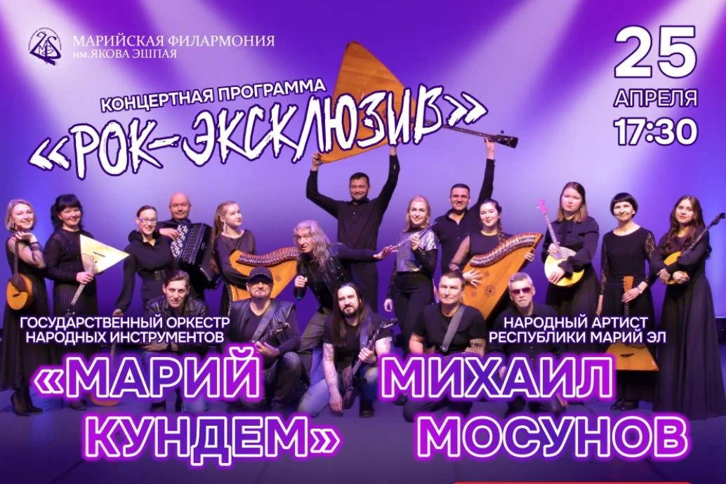 Как звучит Metallica, Roxette, «Ария» и «Парк Горького» на балалайках? 25 апреля в Марийской госфилармонии имени Я. Эшпая оркестр «Марий кундем» и народный артист Марий Эл Михаил Мосунов исполнят рок-хиты в народном звучании!