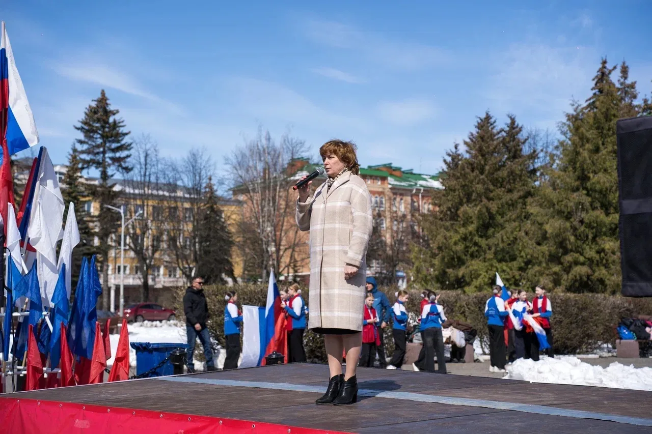 Автоколонна, украшенная флагами России и Республики Марий Эл, после официального старта на площади Ленина проехала по улицам Йошкар-Олы.