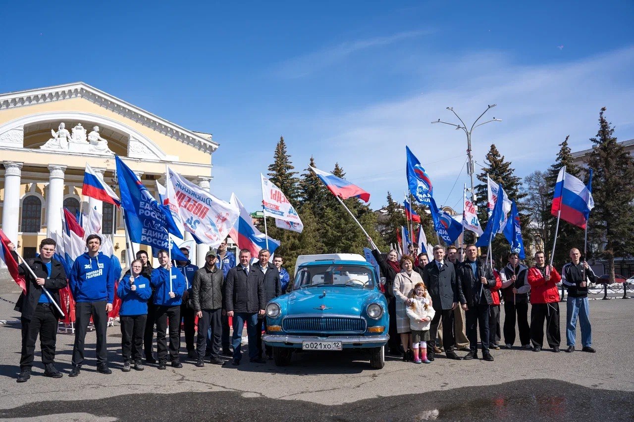 Автоколонна, украшенная флагами России и Республики Марий Эл, после официального старта на площади Ленина проехала по улицам Йошкар-Олы, привлекая внимание горожан к предстоящему «Диктанту Победы».