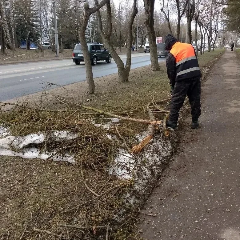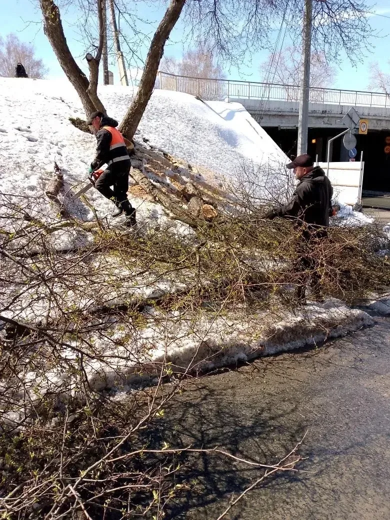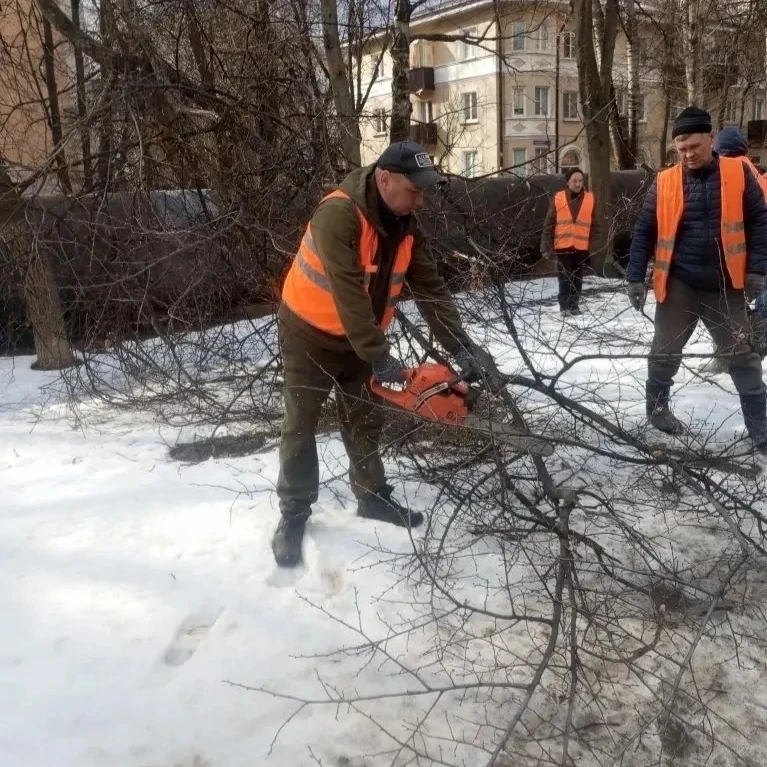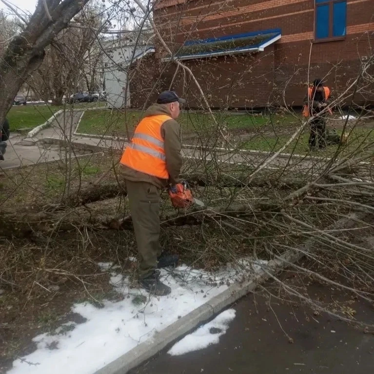 Сотрудники АО «Город» продолжают работы после стихии. Коммунальщики проводят расчистку поваленных деревьев и крупных веток.