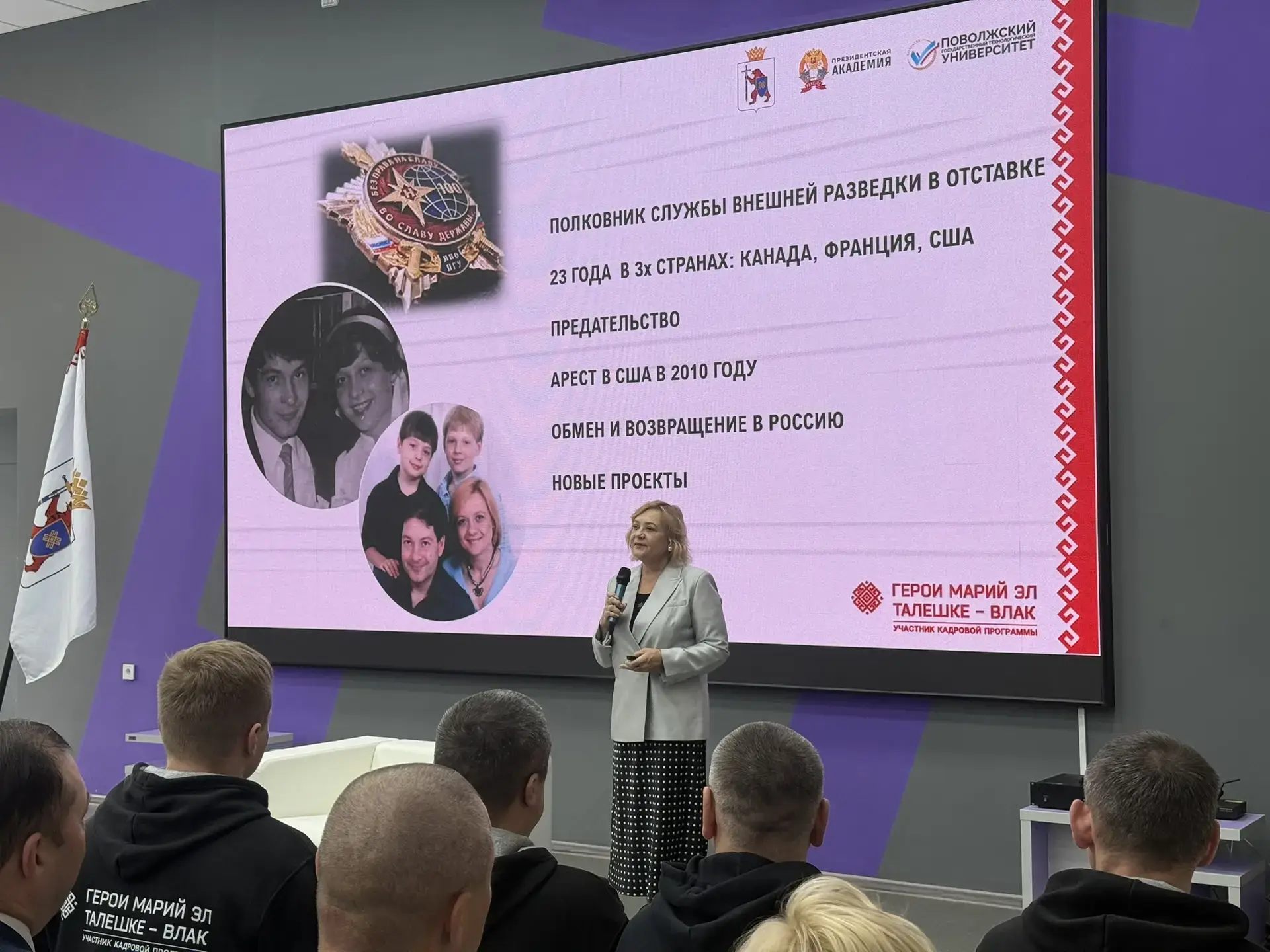 В рамках региональной кадровой программы «Герои Марий Эл. Талешке-влак» для ветеранов специальной военной операции была организована встреча с полковником службы внешней разведки в отставке, федеральным экспертом, писателем и лектором Российского общества «Знание» Еленой Вавиловой.