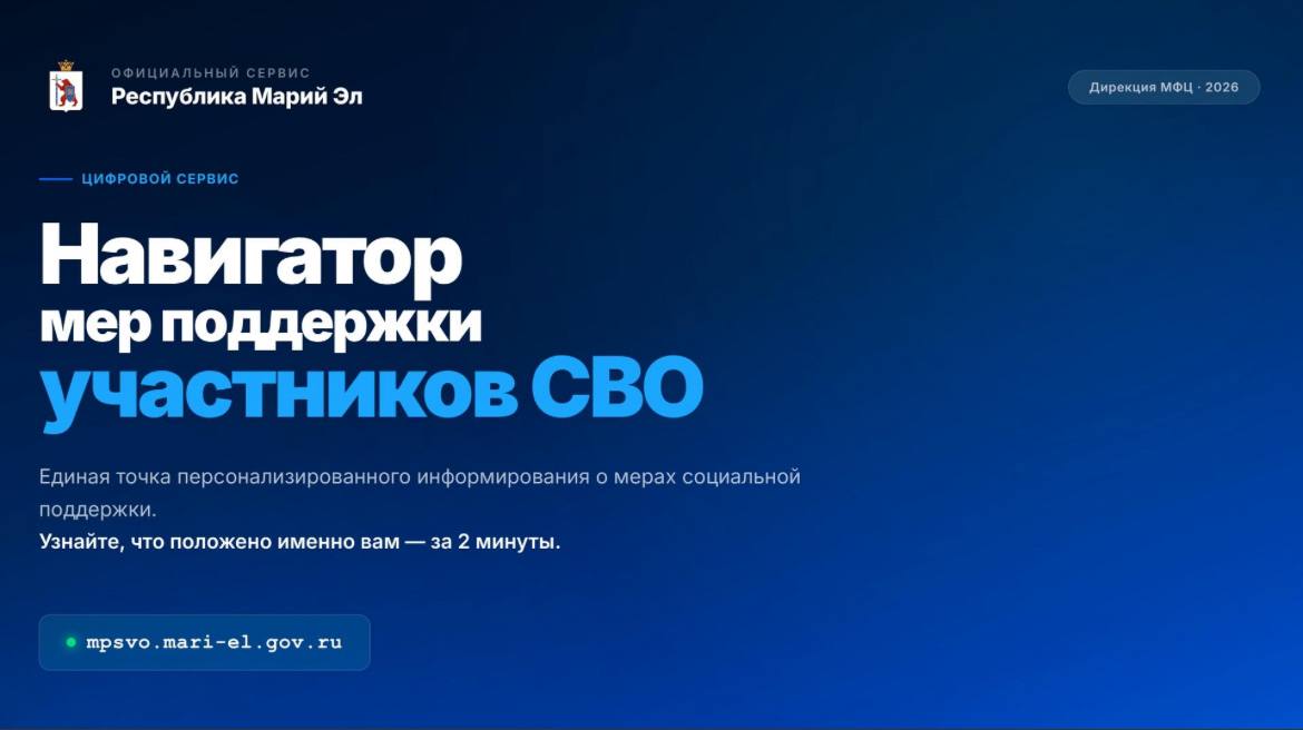В Марий Эл запустили «Навигатор мер поддержки участников СВО и их семей». Цифровой сервис объединяет 124 федеральные, региональные и муниципальные меры поддержки. Электронный помощник размещен на портале Правительства Марий Эл.
