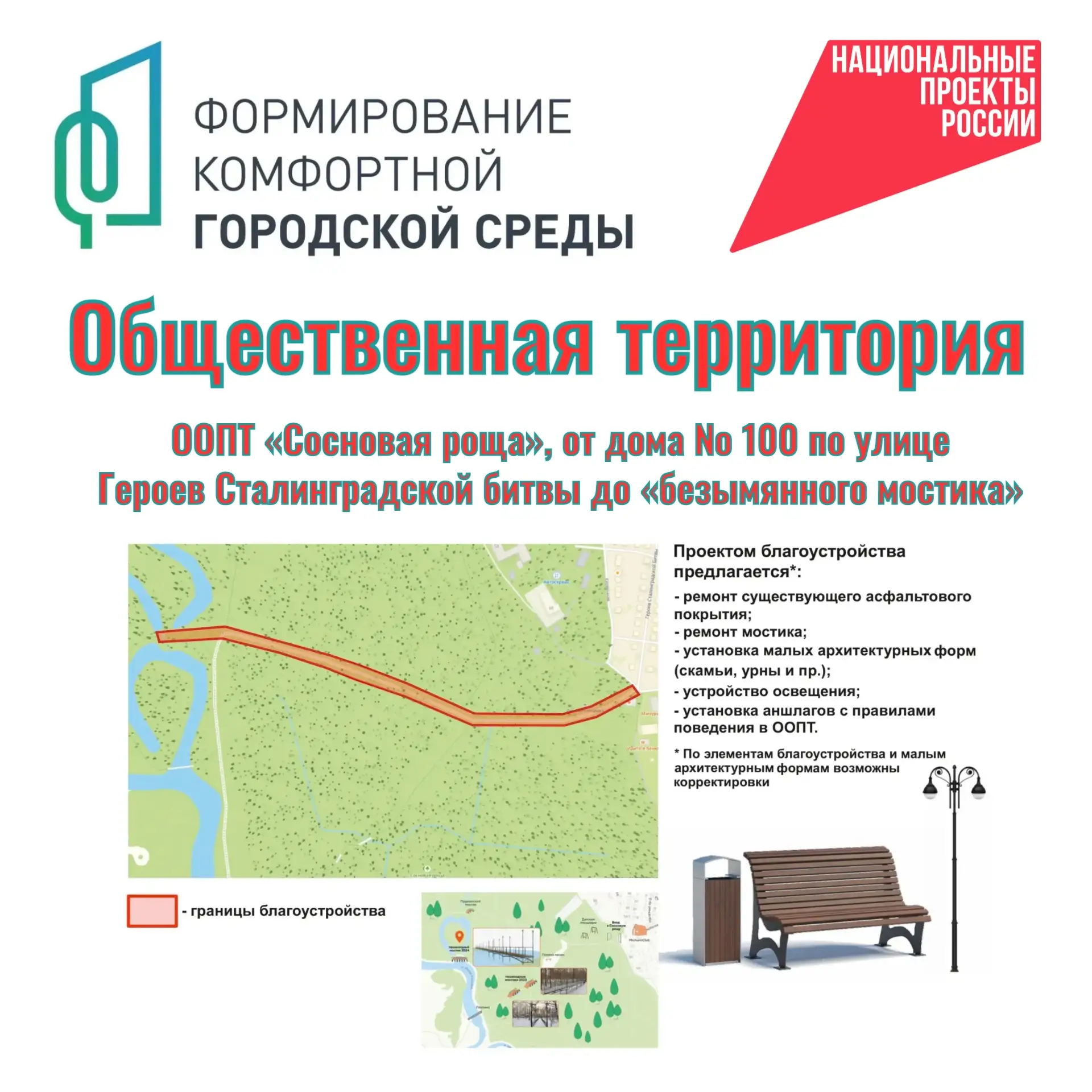Один из дизайн-проектов жителей, представленных на голосовании - территория в Сосновой роще от дома 100 по ул. Героев Сталинградской битвы до «безымянного мостика».