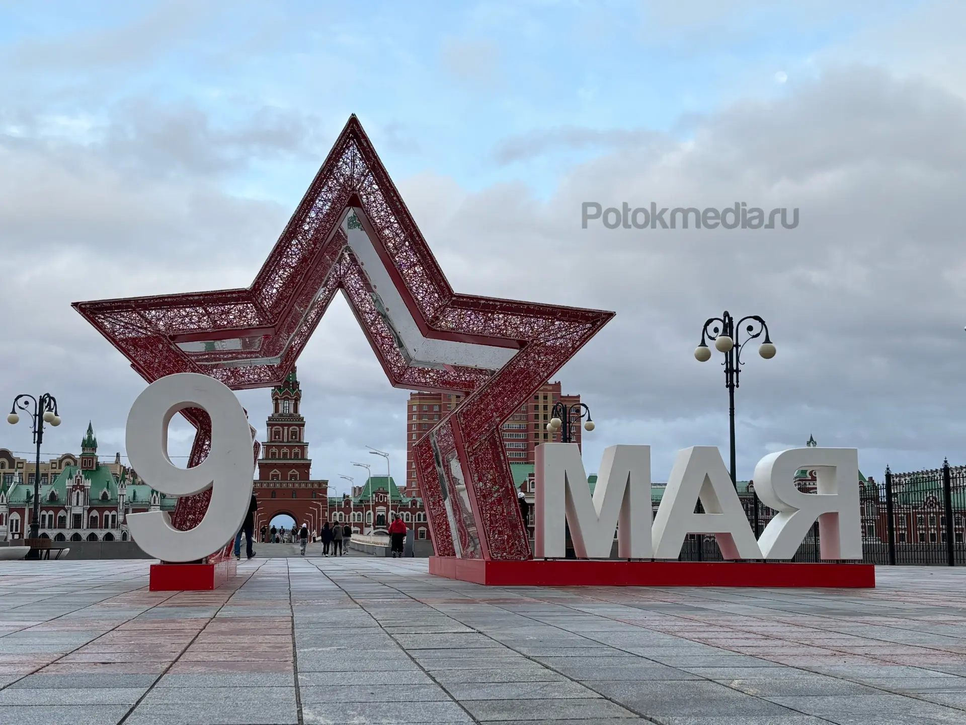В Йошкар-Оле около Благовещенского собора установили инсталляцию ко Дню Победы.